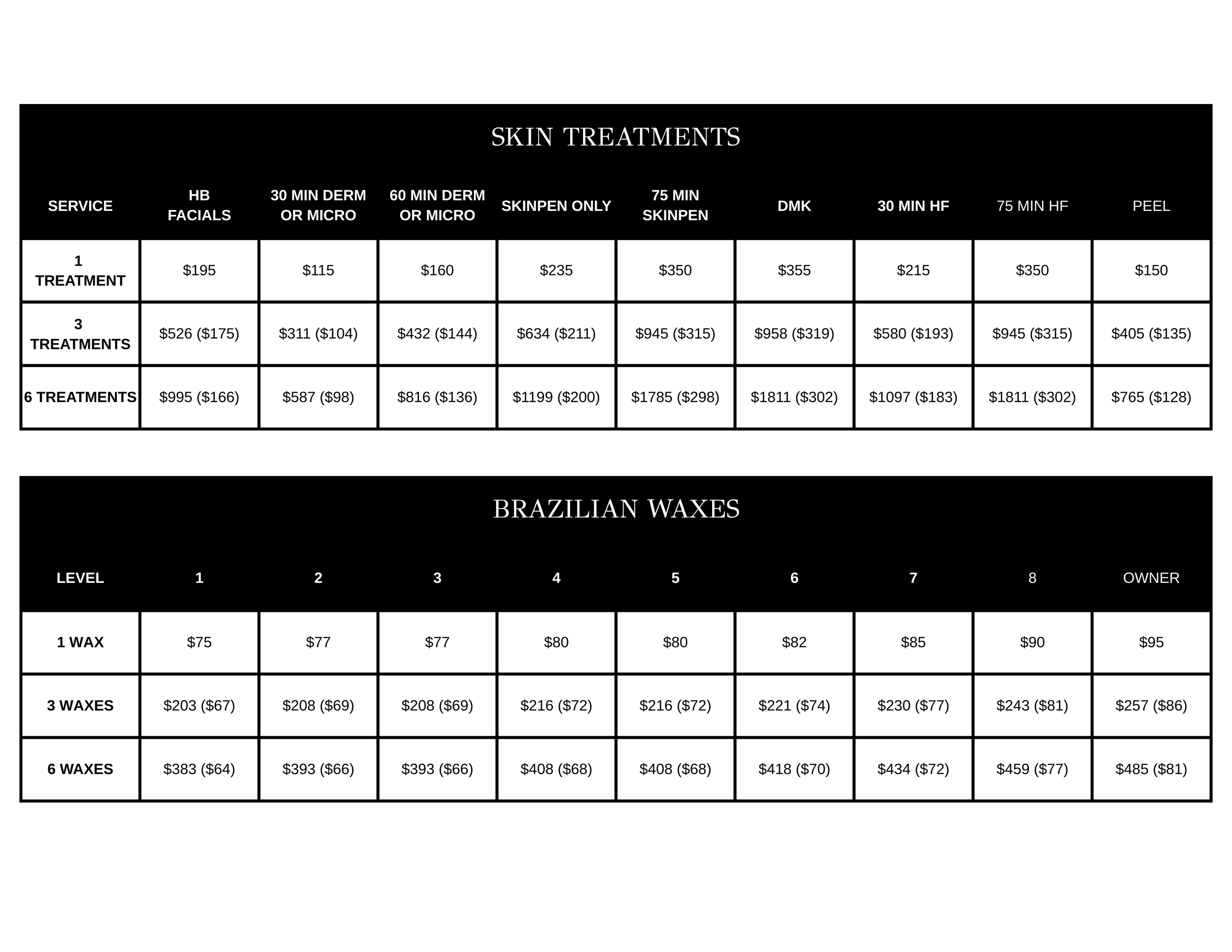 Enjoy some of our most popular services available at a discounted rate when purchased in a package of 3 or 6.